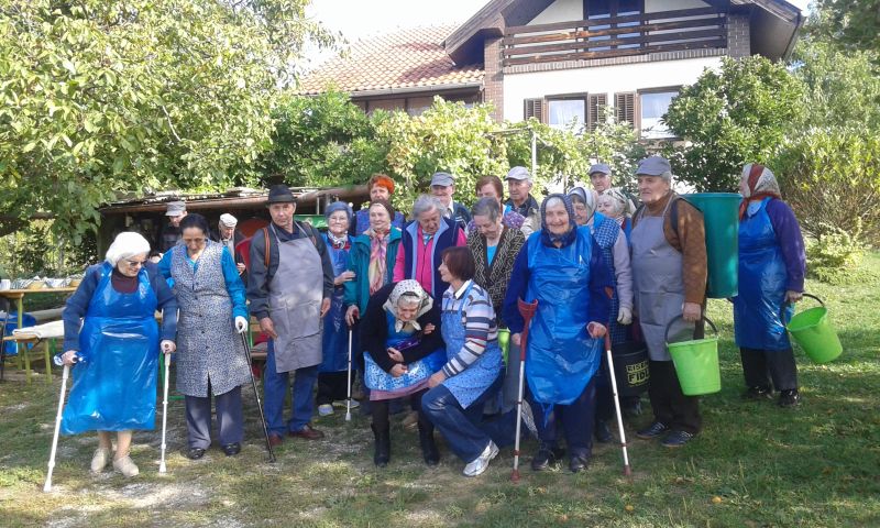 Sama trgatev je sicer potekala kot nekoč, na povsem stari način obiranja. Oblekli so se v stare predpasnike, rute, moški so imeli delovne »šürce« in brente... „Želimo se čim bolj povezati s širšo okolico, da razbijamo stereotip doma, zato smo jih številne prepeljali v čudovito okolje, kjer so uživali v lepem sončnem dnevu. Ob tem smo hoteli stanovalce odpeljati iz zaprtih prostorov, da pridejo v naravo, da podoživijo trenutke, ki so jih doživljali v mladosti in da se naužijejo lepih jesenskih barv. Spremljal nas je tudi harmonikar. Z njim so prepevali stare pesmi - ena naša stanovalka je dejala, da je podoživela mladost. Peli smo namreč pesem, ki jo je pel njej mož, ko jo je snubil. Imeli smo vse vrst potice, kvasenice, ocvirkove pogače, obilno malico – krhlje, orehe, žganje, orehovec, vino... Same dobrote. Počaščeni smo bili tudi z Vinsko kraljico Slovenije, Sandre Vučko, ki je stanovalcev stregla z dobro kapljico vino in se družila in veselila z njimi. Zelo rada ima stare ljudi, saj velikokrat omenja, da se je veselja do vinograda in znanja navzela od svojega starega očeta“, razlaga delovna terapevtka Sonja Kolbl.
