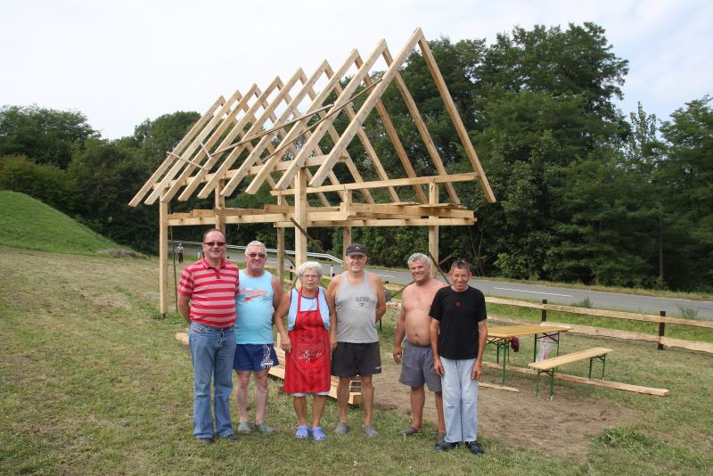 Ko smo v Vratji Vasi, ki sodi v občino Apače, pri domačiji Arzenšek, s ceste opazili skupino »dedov«, ki so imeli opravka z leseno konstrukcijo stavbe, smo se podali na kraj dogodka. Ni se nam bilo treba predstavljati, saj so takoj dejali: »Glej novinar je prišel!«. Šele, ko smo se pogovarjali z gospodarjem Alojzom Arzenškom, smo izvedeli, da bo to prvi kozolec v Apaški dolini. Zakaj kozolec? »Čeprav sem zaposlen, se postransko ukvarjam z bio kmetijstvom. Dve leti že pridelujem na bio način žita. Sedaj bi rad razširil dejavnost na kozjerejo, kateri smo namenili 64 arov velik travnik. Prav zato smo pristopili k postavitvi kozolca. V spodnjem delu bo prostor, kamor se bodo zatekale koze, zlasti pozimi, v zgornjem delu pa bo prostor za krmo. Kot vidite, mi pri delu pomagajo prijatelji, za kar se jim toplo zahvaljujem.« Mimogrede naj omenimo, da so vsi delali le za »boglonej«. Gospodar pa je s pomočjo sestre Majde Jerebic, poskrbel, da niso bili lačni. Kaj se tiče odžejanja, kar je v tej vročini nujno, je gospodar poskrbel tako, da so si lahko delavci pivo natočili na pipi. Mi bi rekli, da je bil samopostrežni način odžejanja. Pa še recite, da ni več solidarnosti? Alojz jo je občutil na lastni koži, ko je bil deležen brezplačne pomoči prijateljev. V šali so »delavci« dejali, da se bo lahko kdo na kozolcu v dišečem senu naspal, a, da to ni nobena konkurenca Gostilni Kozelj, ki ima verjetno edina v občini Apače sobe za prenočišče.