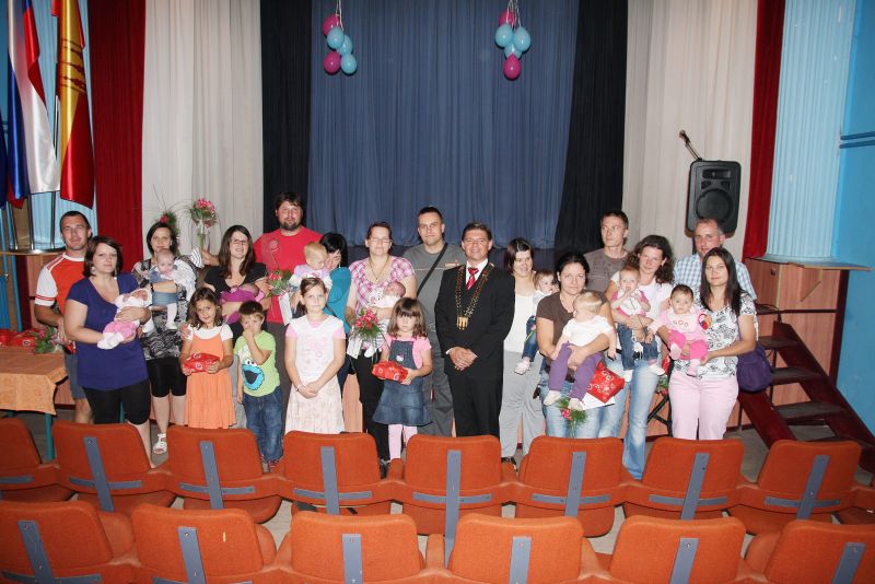Srečanje, ki ga je vodila Tatjana Padovnik, se pričelo z nastopom otrok iz Vrtca pri Sv. Trojici. Pod vodstvom vzgojiteljic sta nastopali dve skupini, ki sta zapeli vsaka po eno pesmico. Starše z dojenčki je nagovoril župan Darko Fras, ki je med drugim dejal: »Veselje in čast mi je, da lahko staršem v imenu občine, čestitam ob rojstvu otroka, ki se vam je rodil v obdobju od lanskega sprejema dojenčkov. Občina si prizadeva, da bi na simboličen način pomagala družinam, ki so se odločile za rojstvo otrok. Mi se zavedamo, da moramo otrokom omogočiti varstvo in šolanje, vendar največje breme pade na starše. Bon za 150 evrov, ki vam ga bomo izročili, je le simbolično priznanje občine, k vaši odločitvi. Želim, da bili otroci, kakor starši zdravi in zadovoljni občani. Lahko rečem, da mi je to srečanje z dojenčki in starši najlepši dogodek mojega županovanja.«