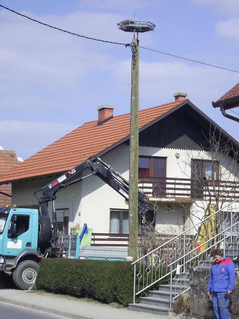 Prav v času, ko so se štorklje začele vračati z juga, v deželi dolgonogih in dolgokljunih ptičjih lepotic, v Pomurju, naravovarstveniki in drugi, ki jim ni vseeno kam se bodo štorklje naselile, skušajo obnoviti poškodovana ali uničena gnezda. Tako je tudi v središču Sv. Jurija ob Ščavnici, kjer so dolga leta, na električnem drogu pri domačiji Mertik, gnezdile štorklje. Ker pa je bilo gnezdo na električnem »A« drogu zgrajeno od štorkelj brez podstavka, se je lani gnezdo nagnilo. Pri tem so iz gnezda popadala jajca, s čem je bilo gnezdenja para konec in tako tudi ni bilo naraščaja.