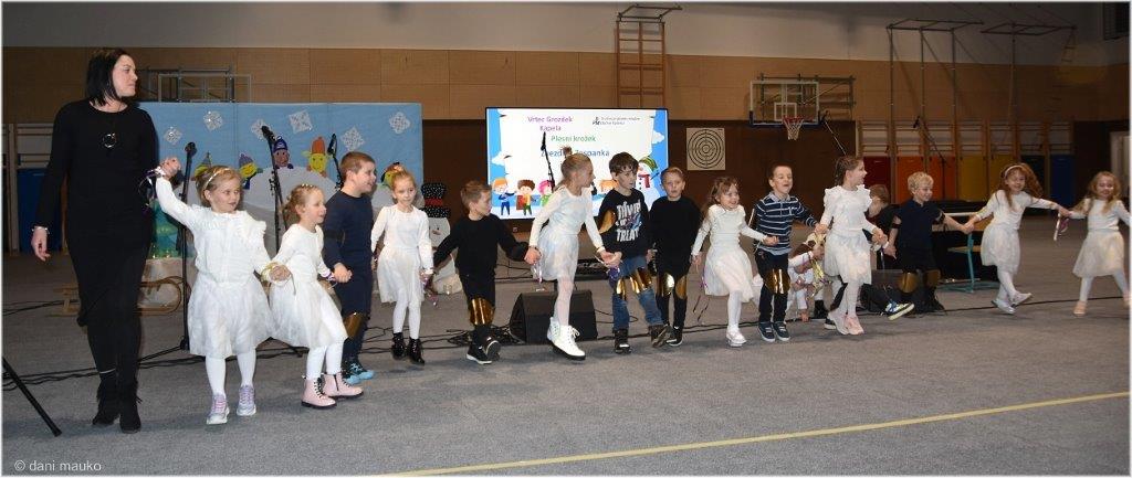 Povezovalki sporeda, Ajda Rihtarič in Ana Velnar, sta napovedali nastopajoče, ki so napolnili dvorano: malčke iz vrtca Radenci-Radenski mehurčki ter enote Grozdek Kapela, učence OŠ Kajetana Koviča Radenci – Otroški pevski zbor 1.a in 1. b razred, nastop članic Twirling kluba Radenci, učence OŠ Kapela (Plesna skupina Toca Toca˛Hot«n«Cold, pevski zbor 1 in 2 ter mešani pevski zbor). Dogodek so s prikazom ritmične gimnastike sklenile članice Športnega kluba Rubin Radenci pod mentorskim vodstvom Robertine Rožanc.